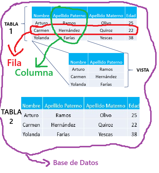 1. Base de datos: es un conjunto de tablas relacionadas.