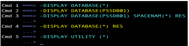 1. Hay que poner “M” en la interfaz del ISPF > Poner 14 > Poner 7 > Escribir en CMD 1:-DISPLAY DATABASE(*) y darle a intro,