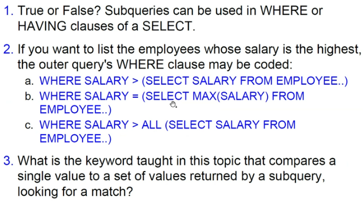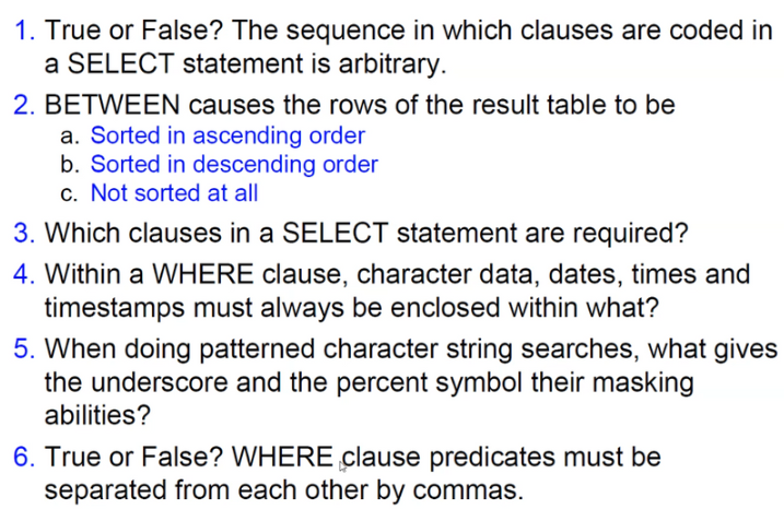 1. Falso => El orden de las cláusulas en una sentencia SELECT no es arbitrario,