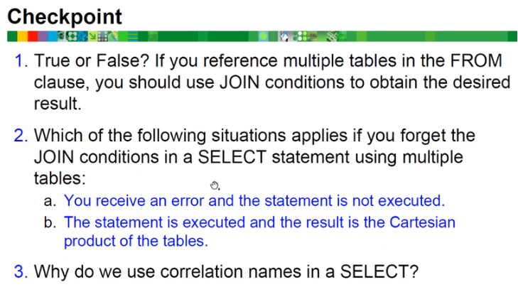 1. Verdadero => Si no usas condiciones de JOIN, se llevarán a cabo productos cartesianos.