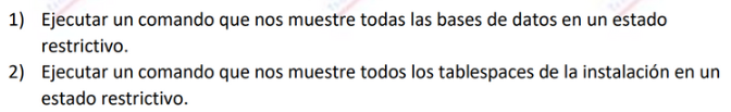 El cmd 3: muestra todos los tablespaces de mi base de datos en estado restrictivo, pero no encuentra nada. Sin estado restrictivo sí encuentra.