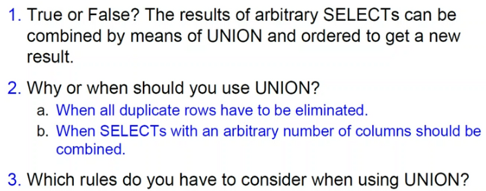 3. Que las columnas de ambos queries deben tener el mismo formato y el mismo número de columnas.