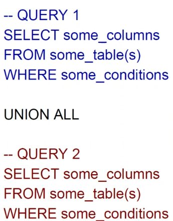 En db2 de IBM Z se pueden unir dos queries con UNION ALL. Esto consiste en juntar todas las filas de ambos queries sin duplicados, pero