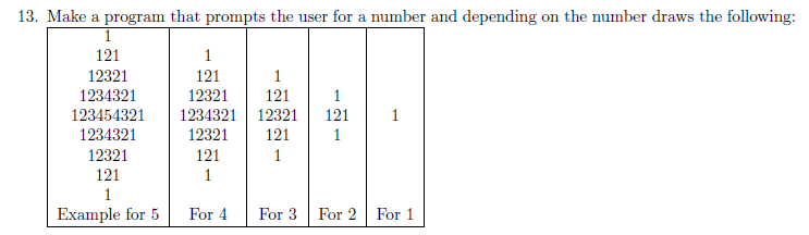 //To declare the number variable, and the counters i and j. And aux variable to print from 1 to num.