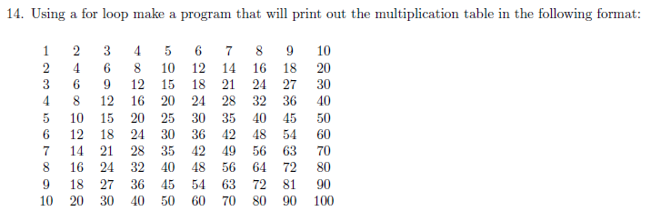 printf("$$$$$$$$$ MULTIPLICATION TABLE $$$$$$$$$");